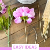 Once I have the flower heads off the original long stems I break wooden skewers or chopsticks to create a new shorter stem to the height I need.